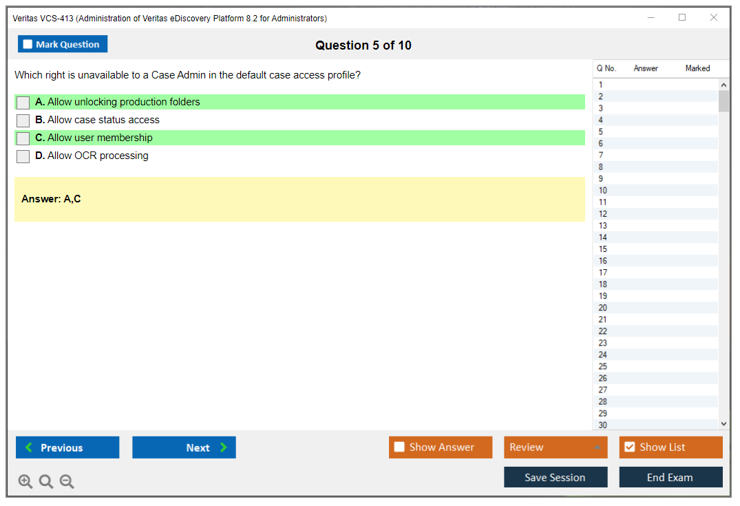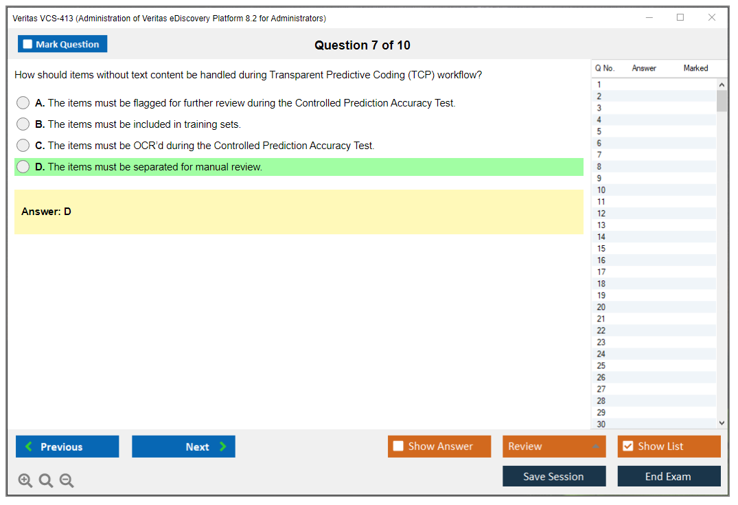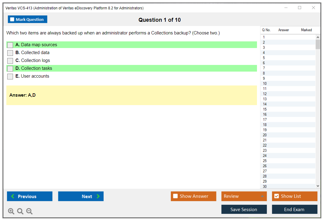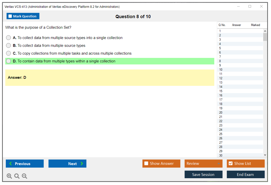 The Veritas VCS-413 (Administration of Veritas eDiscovery Platform 8.2 for Administrators) exam is designed to validate the knowledge and skills required to administer the Veritas eDiscovery Platform 8.2, including tasks such as installation, configuration, maintenance, and troubleshooting.