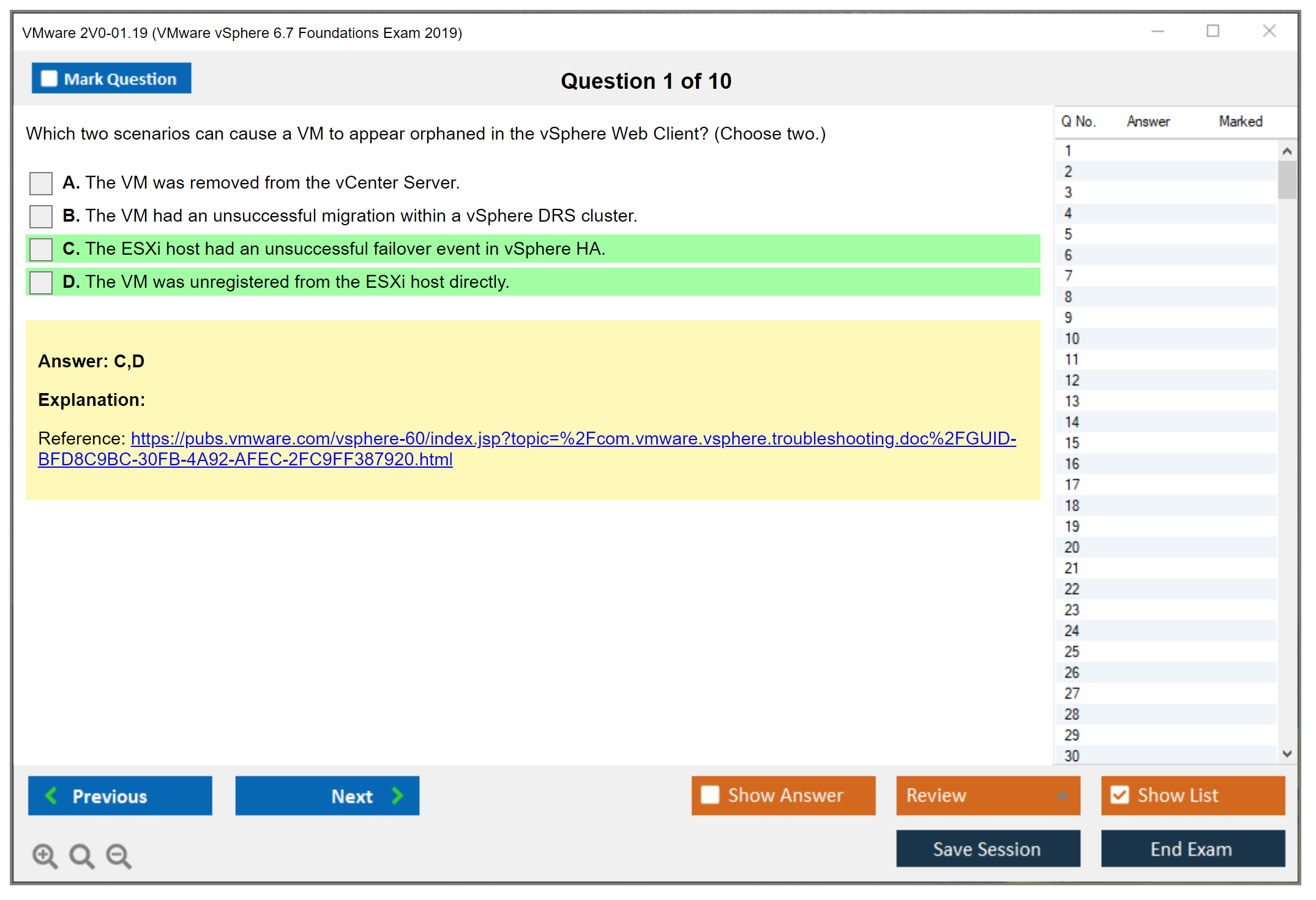 Note: VMware 2V0-01.19 (VMware vSphere 6.7 Foundations Exam 2019) will not receive any new updates.