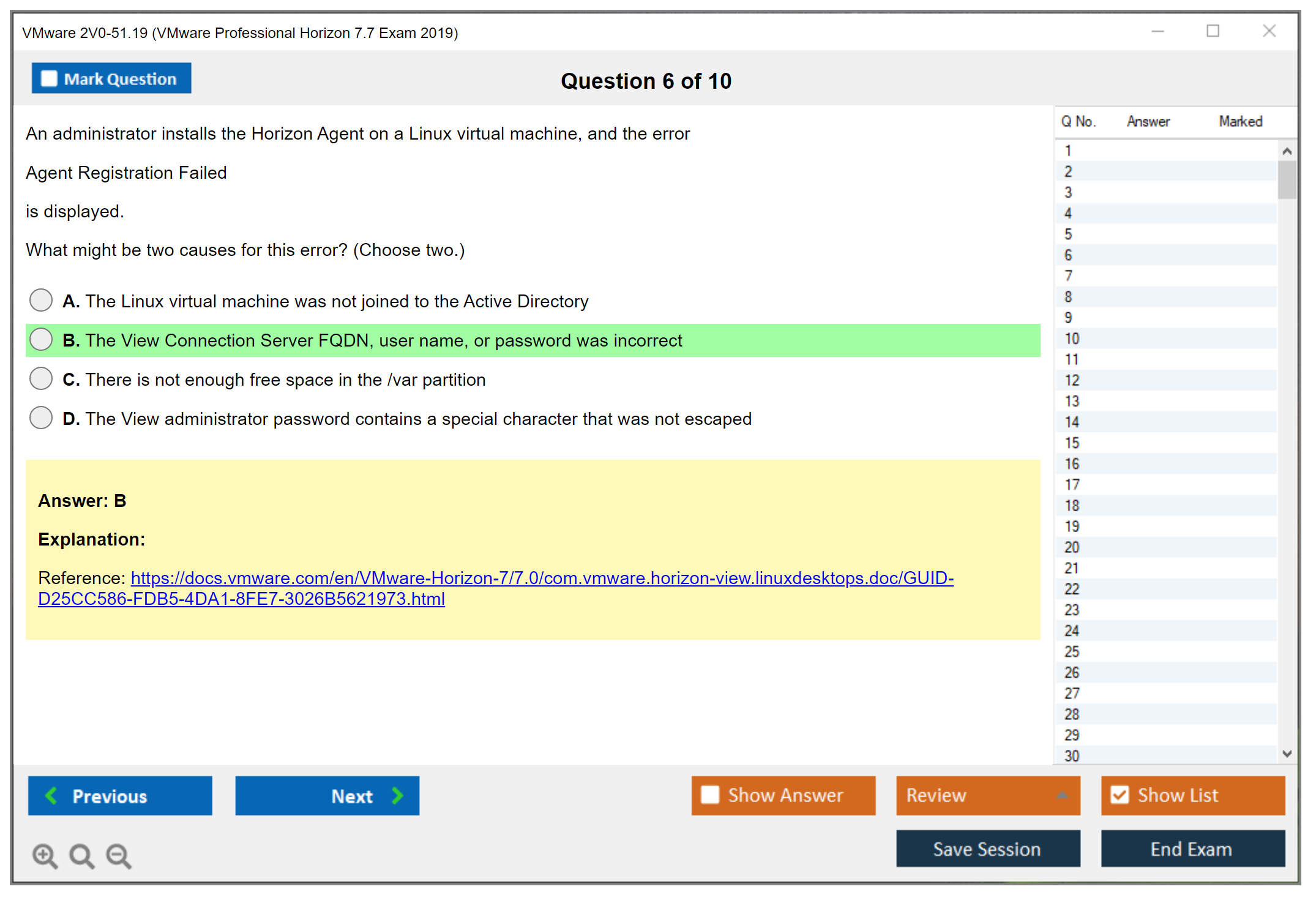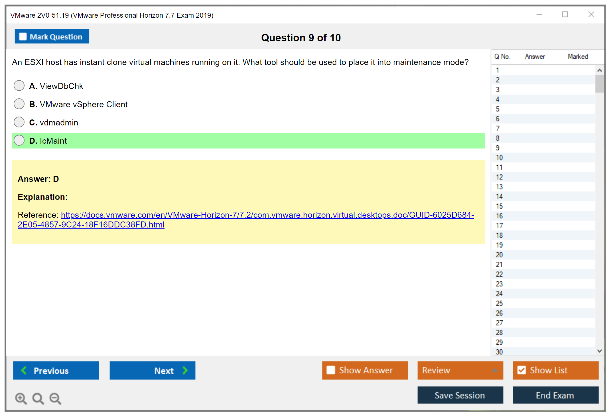 Note: VMware 2V0-51.19 (VMware Professional Horizon 7.7 Exam 2019) will not receive any new updates.