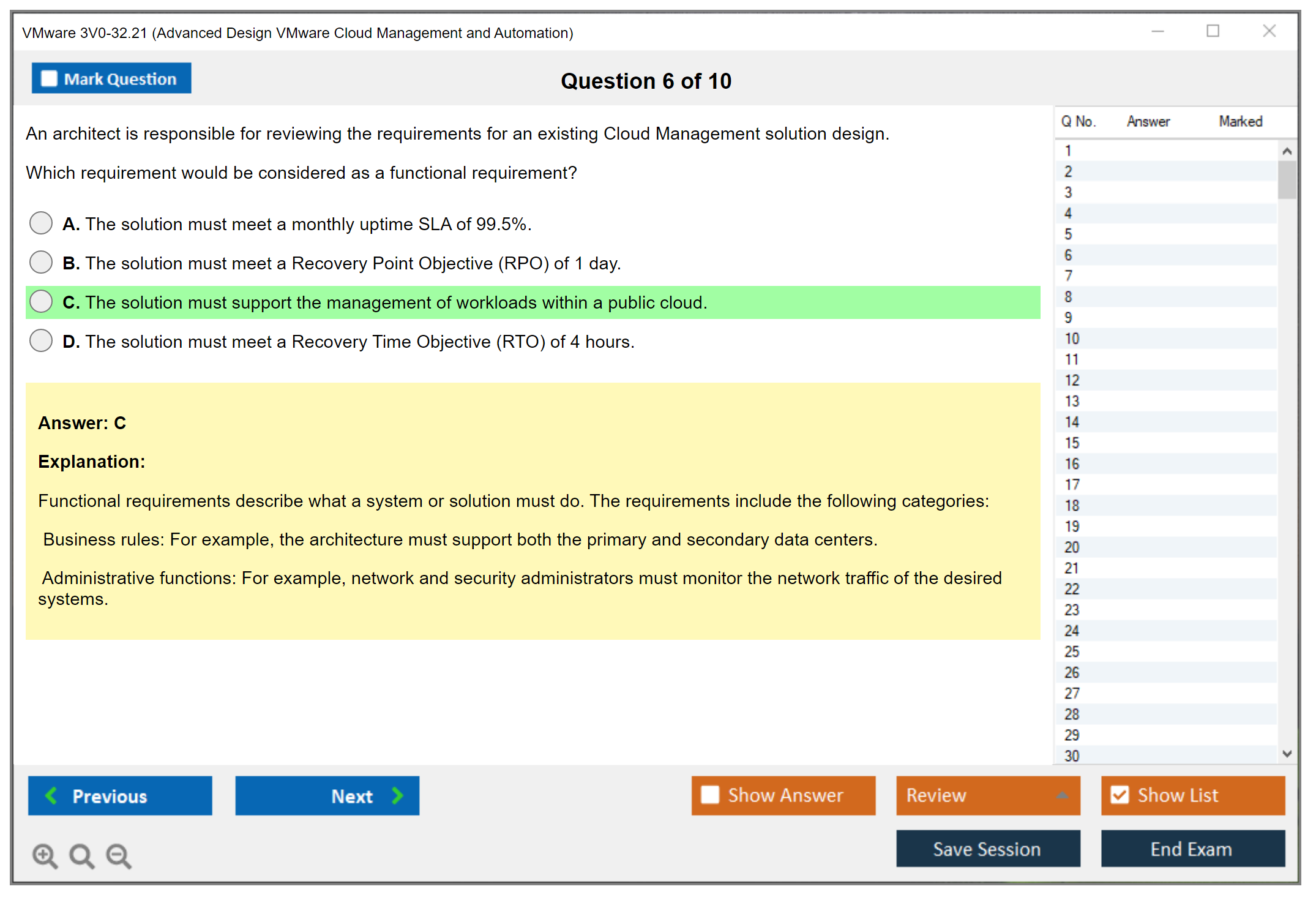 The question format of the VMware 3V0-32.21 Exam includes multiple-choice, drag-and-drop, and scenario-based questions.