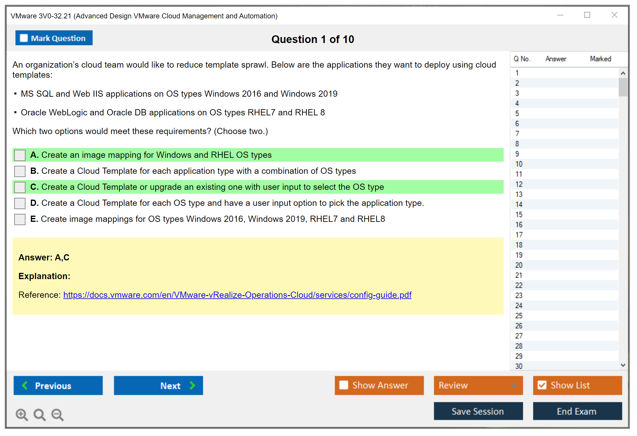 Note: VMware 3V0-32.21 (Advanced Design VMware Cloud Management and Automation) will not receive any new updates.