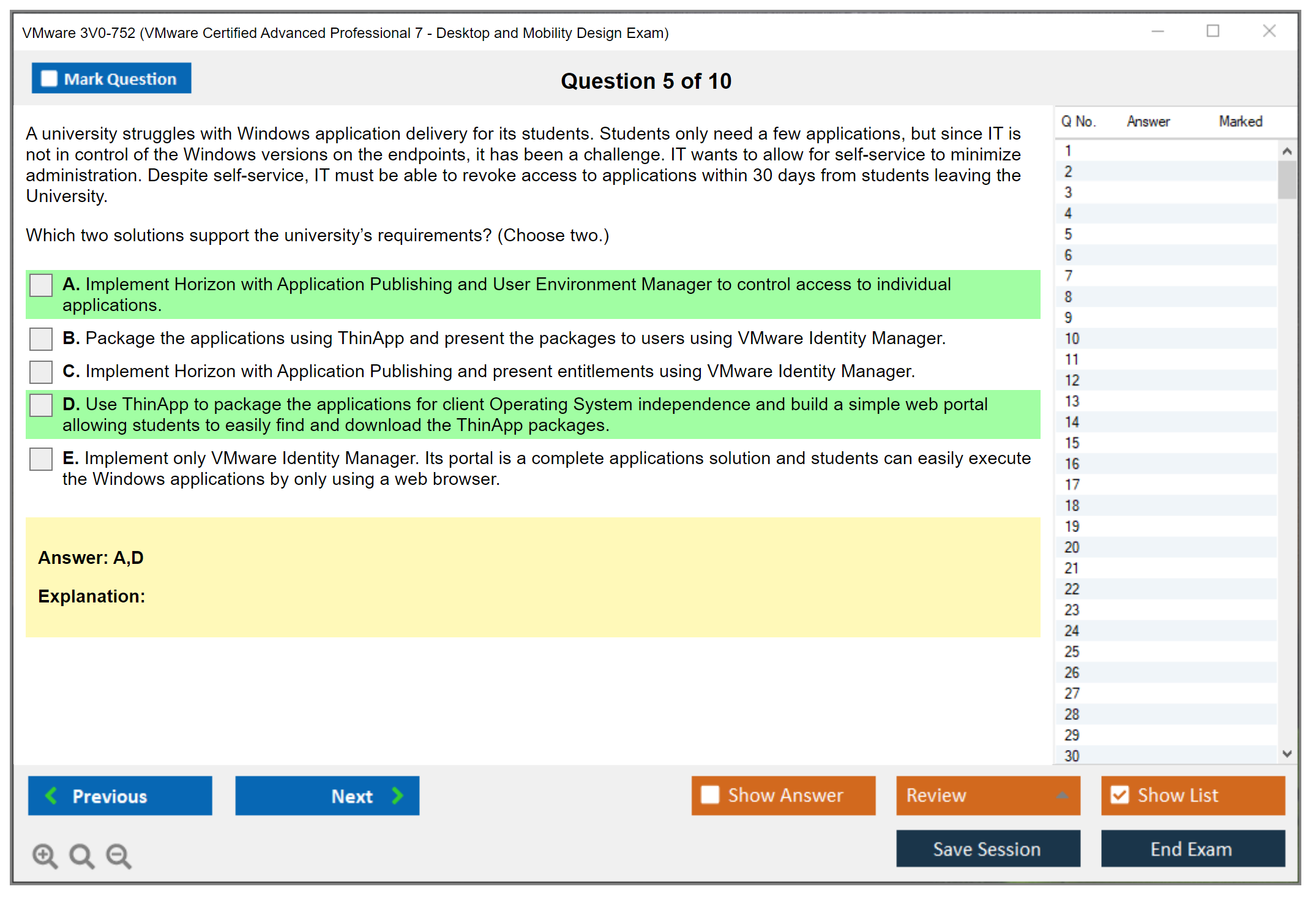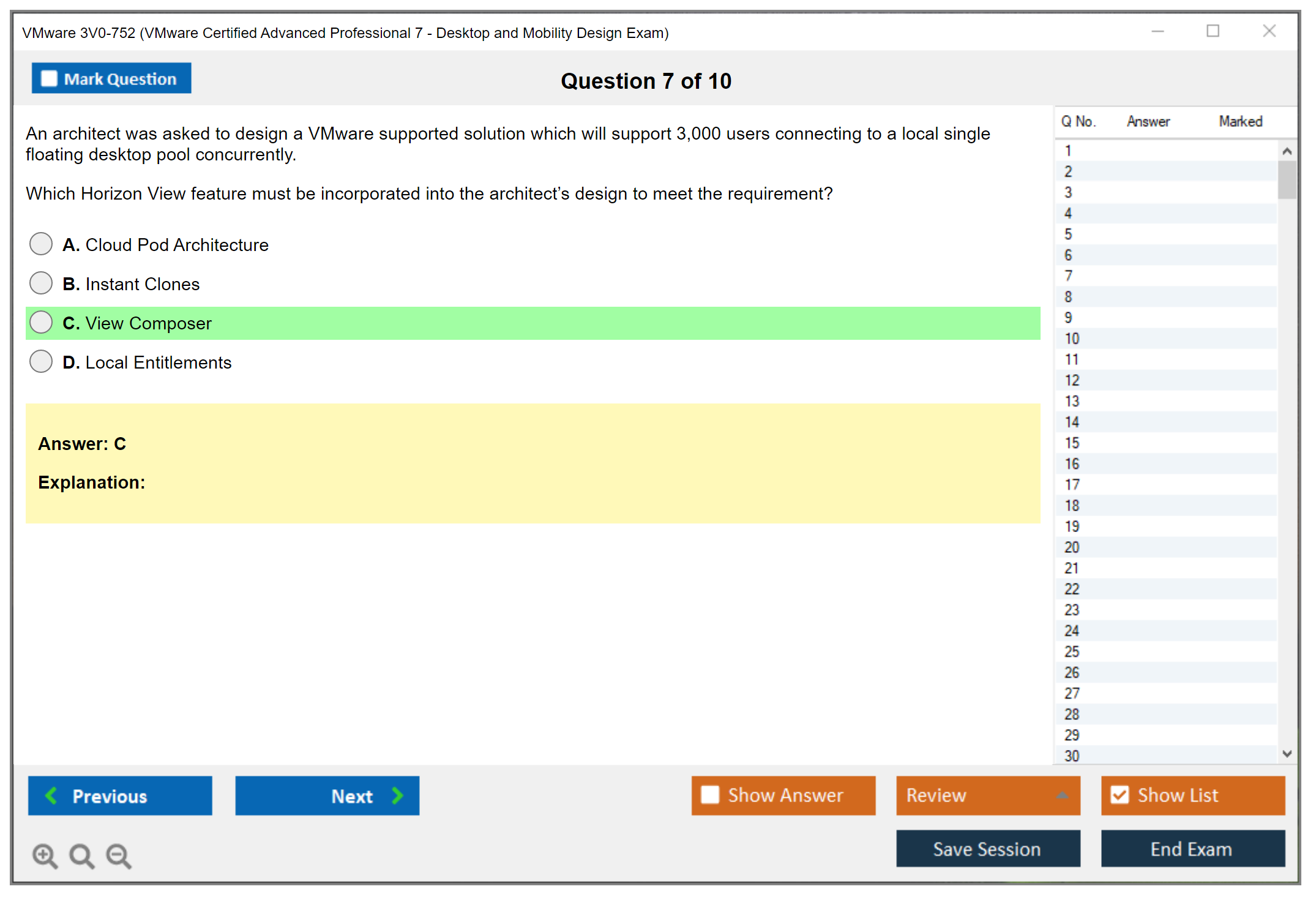 The VMware 3V0-752 (VMware Certified Advanced Professional 7 - Desktop and Mobility Design Exam) is an advanced-level certification exam that validates a candidate's ability to design and deploy a VMware Horizon solution. It focuses on the skills and knowledge needed to design a Horizon solution that meets customer requirements and follows VMware best practices.