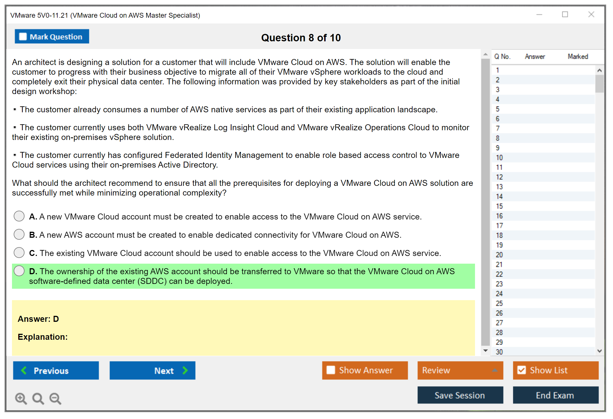 The VMware 5V0-11.21 (VMware Cloud on AWS Master Specialist) Exam is designed for individuals who have the knowledge and skills necessary to plan, deploy, and manage VMware Cloud on AWS solutions. This certification validates a candidate's understanding of the various components and capabilities of VMware Cloud on AWS.