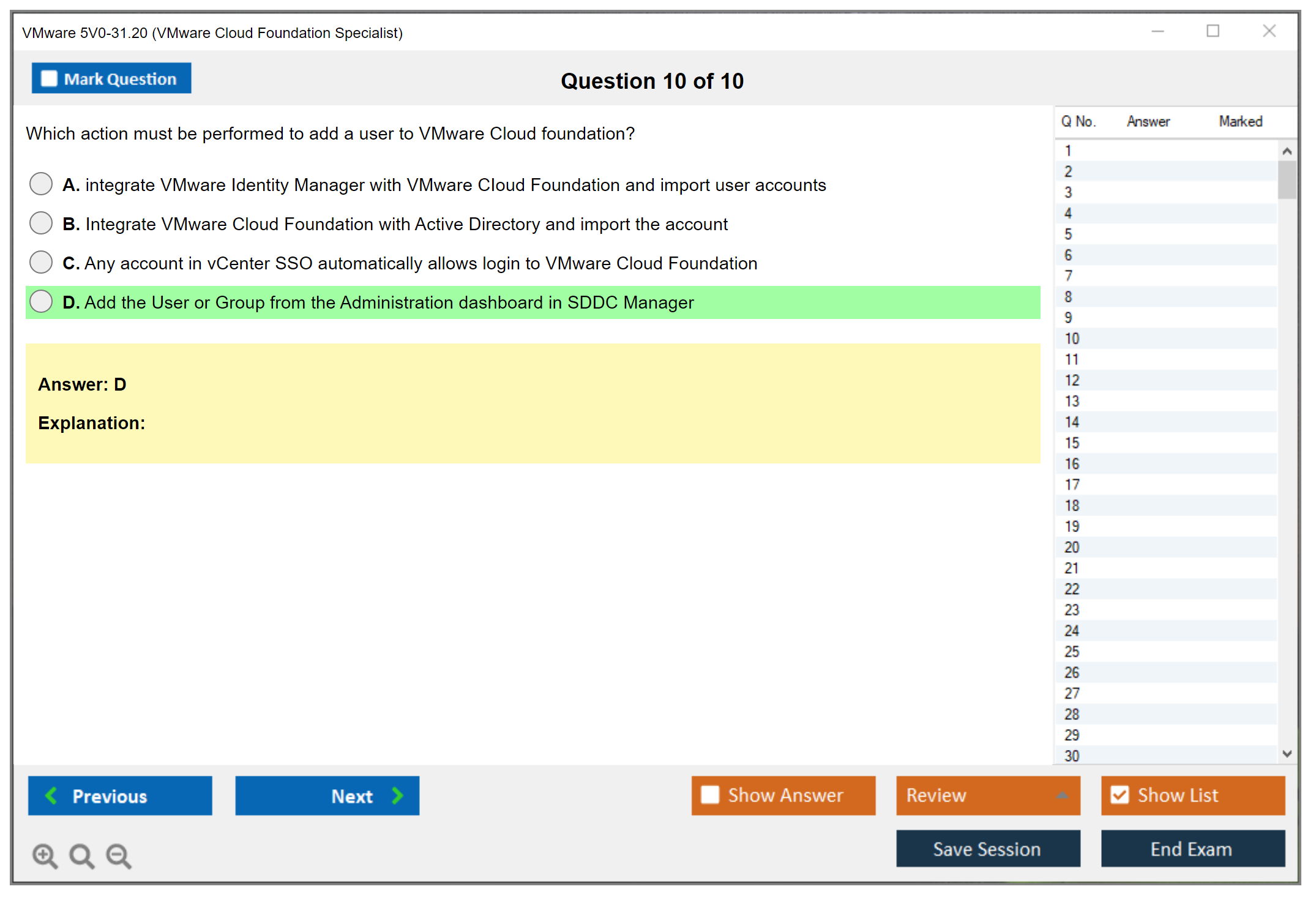 Note: VMware 5V0-31.20 (VMware Cloud Foundation Specialist) will not receive any new updates.