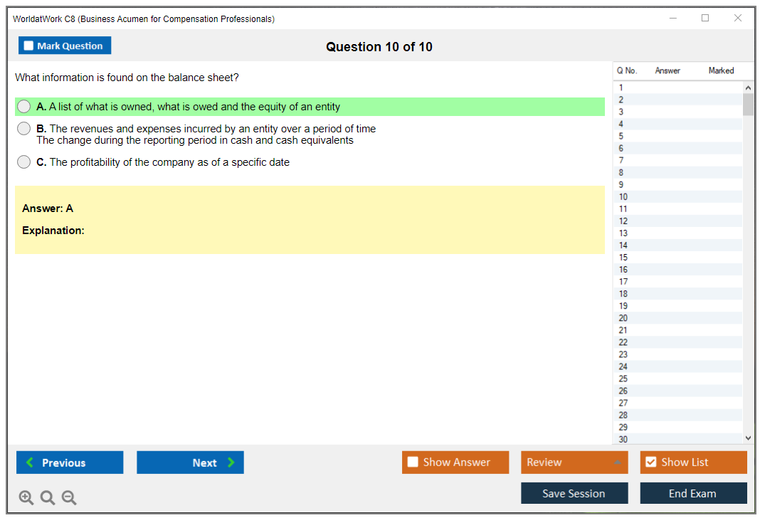 The WorldatWork C8 (Business Acumen for Compensation Professional) Exam is designed to test the knowledge and skills of compensation professionals in understanding and applying business acumen in their roles.