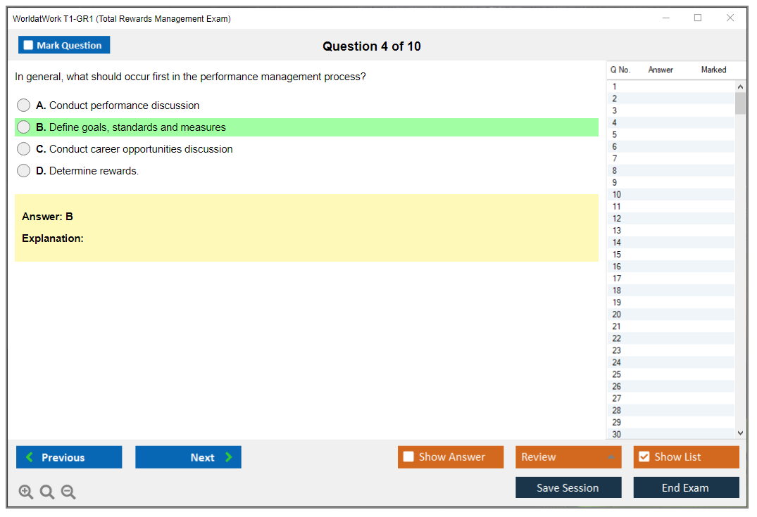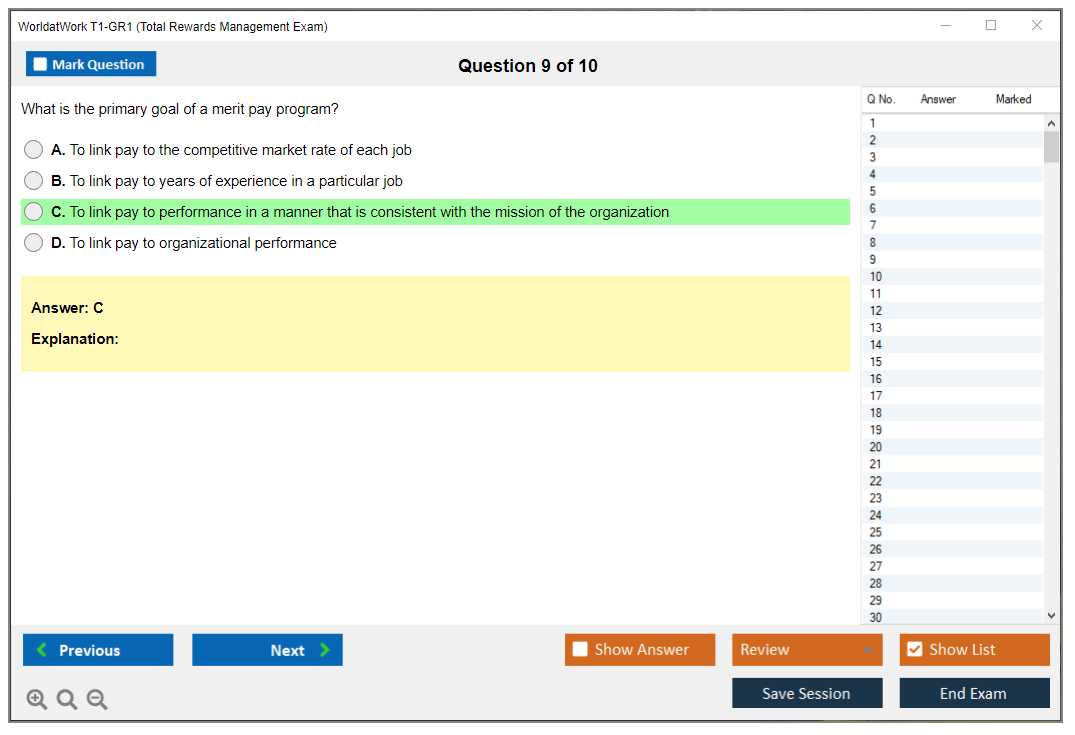 The WorldatWork T1-GR1 (Total Rewards Management Exam) is a professional certification exam designed to test the knowledge and skills of individuals in the field of total rewards management. It covers various aspects of compensation, benefits, work-life effectiveness, recognition, performance management, and talent development.