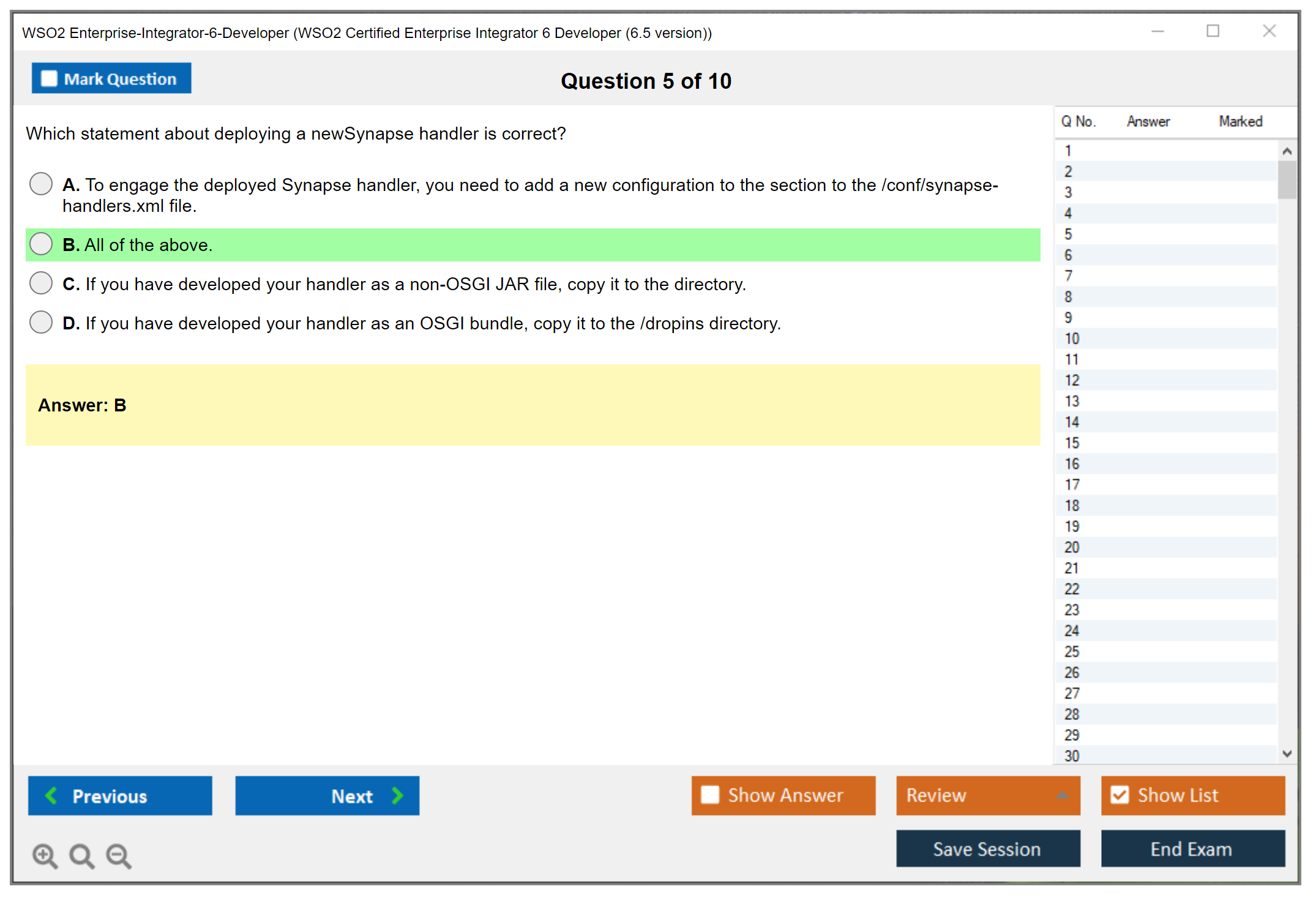 The question format of the WSO2 Enterprise-Integrator-6-Developer Exam includes multiple-choice, multiple-select, and scenario-based questions.