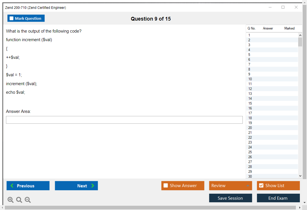 The question format of the Zend 200-710 Exam includes multiple-choice questions.